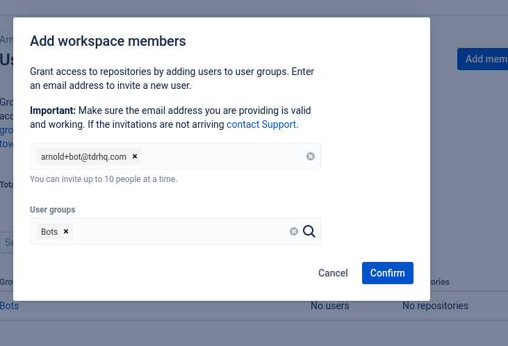 However, it's understandable that you or your security team might want to restrict access to specific repositories. We can do this by creating a new BitBucket user, and limiting the permissions for that user.