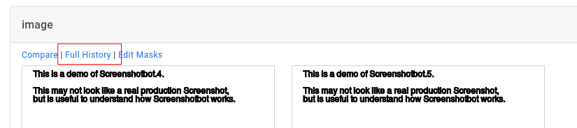 On the History page, you can click the Compare link to compare a screenshot to its previous version. For more information on the Compare tool, read the documentation on Comparing Images