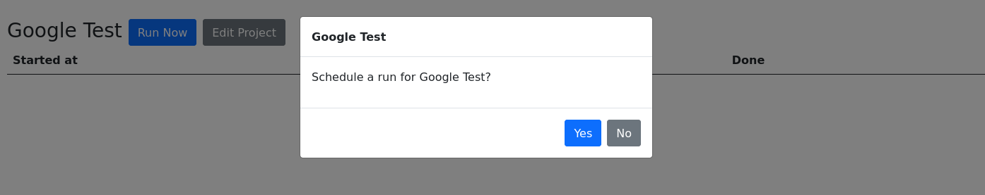 On clicking Yes, we'll start the background job to fetch all the assets and render it on our Browser Cloud. This shouldn't take too long for this project, so in a few minutes you should see a new run show up on your Recent Runs.